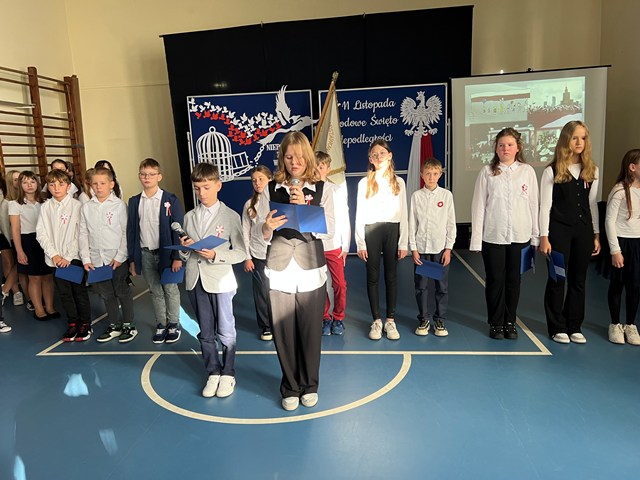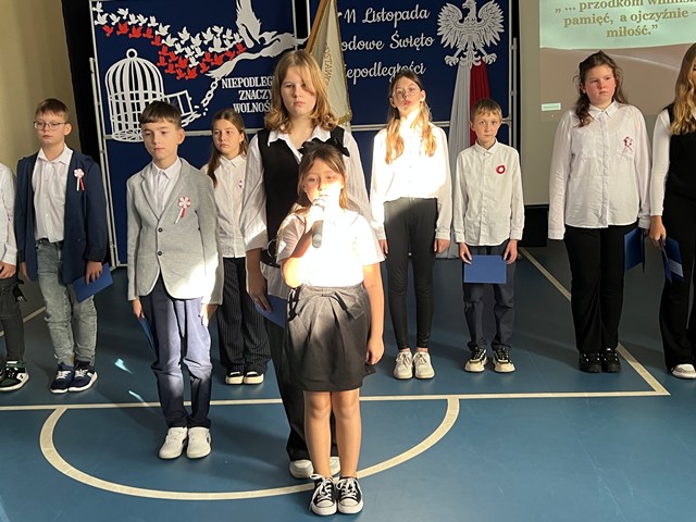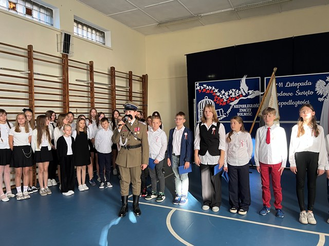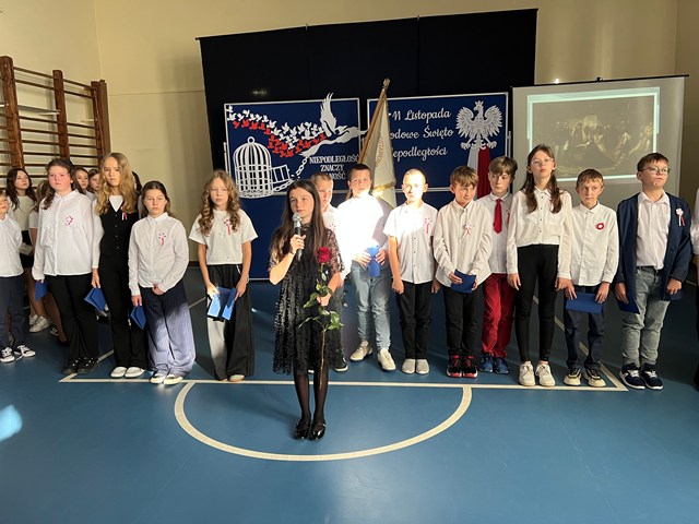 W piątek -7 listopada 2025 roku odbyła się w naszej szkole uroczysta akademia z okazji Narodowego Święta Niepodległości. Uczniowie klasy 5 a pod opieką p. Justyny Kowalczyk i p. Moniki Lech przygotowali przedstawienie upamiętniające 107. rocznicę odzyskania przez Polskę niepodległości, dla klas II-VIII. O oprawę muzyczną zadbała p. Joanna Chibowska wraz ze szkolnym chórem. Za pomocą refleksji, wierszy i piosenek złożyliśmy hołd naszym przodkom, którzy oddali za Polskę to, co najcenniejsze -swoje życie.