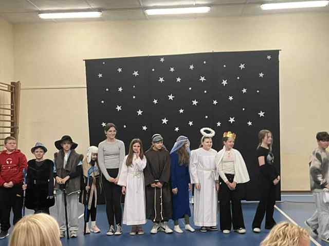 Również nauczyciele i pracownicy szkoły co roku uczestniczą w Wieczorze Wigilijnym, aby na chwilę zatrzymać się w tym zabieganym świecie. Taki wieczór odbył się w naszej szkole w dniu 17 grudnia 2025 roku. Aby umilić ten czas uczniowie pod kierunkiem p. Małgorzaty Matuszewskiej i p. Małgorzaty Serzyckiej zaprezentowali część artystyczną. Zebrani pracownicy szkoły, goście i rodzice mogli obejrzeć Boże Narodzenie w nieco innej formie niż tradycyjne jasełka.