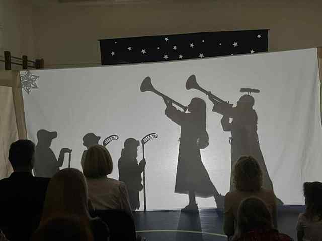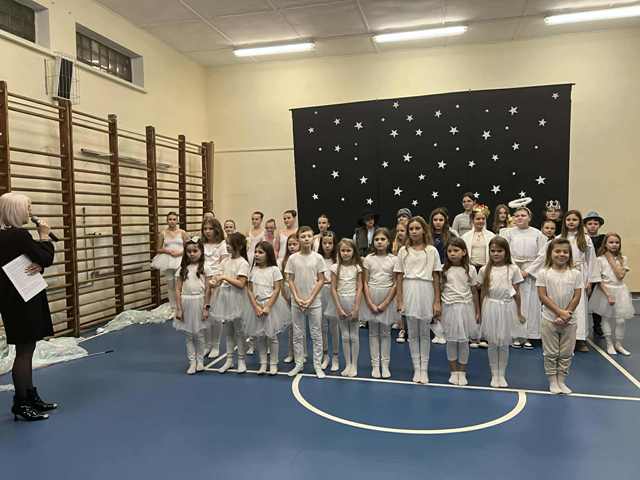 Po przywitaniu zebranych przez dyrekcję i wprowadzeniu przez dziewczynki z klasy VIII w historię Bożego Narodzenia, uczniowie klasy VC przedstawili teatr cieni wcielając się w postacie, które przed laty odegrały najważniejsze role podczas narodzin Chrystusa. Przedstawienie wzruszyło wielu uczestników a mali aktorzy zostali nagrodzeni gromkimi brawami. Kiedy kurtyna opadła, scena zmieniła się salę taneczno-baletową. Uczniowie z koła tanecznego klas I-III wykonali taniec do kolędy: „Przybieżeli do Betlejem” a na koniec przy utworze: „The sprinth of Christmas Past” uczennice klasy VID wykonały baletowy taniec aniołów podtrzymując ogromne wzruszenie zebranych.