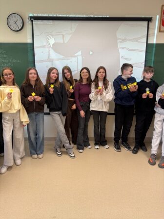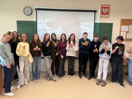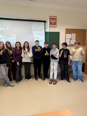 Ważnym elementem udziału w akcji było również własnoręczne wykonanie papierowych żonkili – symbolu pamięci, szacunku i solidarności z ofiarami powstania. Praca plastyczna pozwoliła uczniom w sposób twórczy wyrazić refleksję nad historią oraz znaczeniem pamięci o przeszłości.