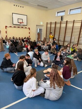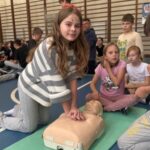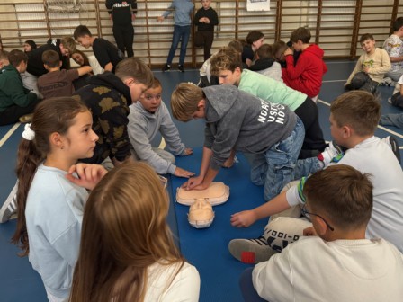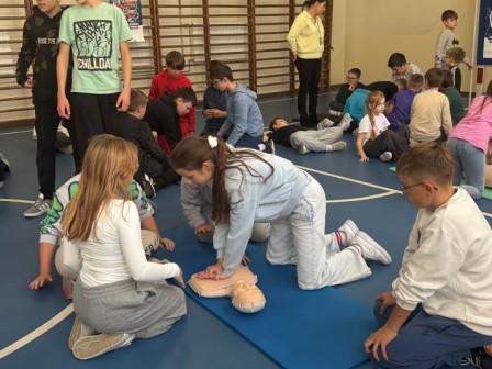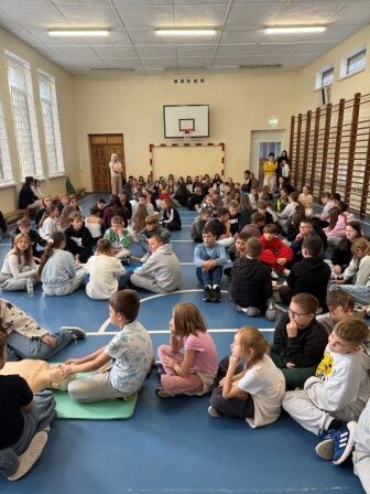 Punktualnie w południe rozpoczęły się wspólne ćwiczenia resuscytacji. W Wydarzeniu uczestniczyli uczniowie z klas 3a, 3b, 5c, 6c, 7c, 8a, 8b, 8c nauczyciele oraz szkolna pielęgniarka – łącznie prawie 150 osób. Wydarzenie miało symboliczne znaczenie – uczestnicy zdobyli praktyczną wiedzę, która w sytuacji zagrożenia życia może okazać się bezcenna oraz przełamali barierę strachu przed udzieleniem pomocy.