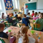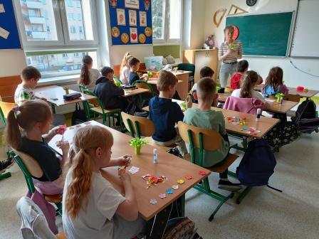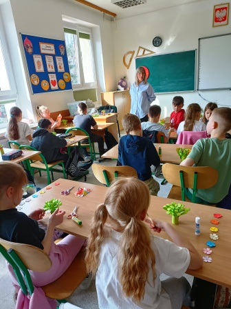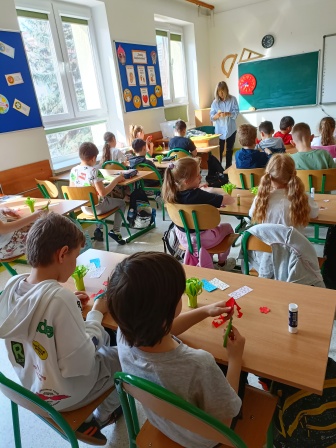 Dnia 24 marca 2026 r. klasa 2a wzięła udział w kreatywnej lekcji wykonując piękne bukiety wiosennych kwiatów z kolorowego papieru. Pani Agata Litwiniak z Warsztatu Terapii Zajęciowej w Kisielanach poprowadziła świetne zajęcia, które zostaną w naszej pamięci na długo.