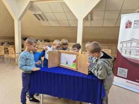 Uczniowie klasy II c zawitali 20 października do biblioteki pedagogicznej. Dzieci wysłuchały opowiadania pt. „Szukając Marudka” autorstwa Kumiko Yamamoto, zaprezentowanego z wykorzystaniem teatrzyku kamishibai. Jest to historia psa i małego chłopca Leosia, który nie bacząc na niebezpieczeństwa wyrusza samotnie na poszukiwanie czworonoga. Historia przyjaciół była wstępem do rozmowy o emocjach, odpowiedzialności oraz bezpieczeństwie. Następnie dzieci przystąpiły do pracy w grupach. Zadaniem uczniów było narysowanie wymyślonych przez siebie historii oraz prezentowanie ich w teatrzyku kamishibai.Kamishibai to teatrzyk obrazkowy ukryty w drewnianej skrzynce. Po otwarciu uczestnikom ukazują się barwne ilustracje, treść czytana jest lub opowiadana przez lektora. Dzieci wykazały się ogromną kreatywnością. Zapraszamy do fotorelacji.