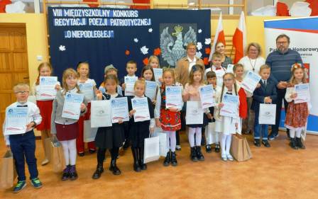 12 listopada Zuzanna Mularewicz z klasy 1b oraz Maciej Olichwiruk z klasy 2a godnie reprezentowali naszą szkołę w VIII Edycji Międzyszkolnego Konkursu Recytacji Poezji Patriotycznej „O Niepodległej”, który odbył się w Szkole Podstawowej nr 3 z Oddziałami Integracyjnymi im. Tadeusza Kościuszki w Siedlcach.