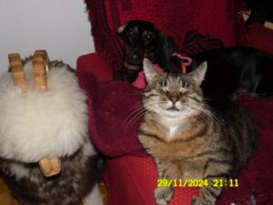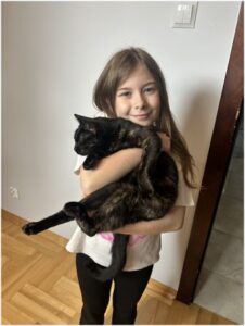 4 lata temu zauważyłem pod blokiem bezdomną kotkę. Była wychudzona. Błąkała się pod blokiem szukając jedzenia. Zacząłem ją dokarmiać wynosząc jej jedzenie. Początkowo uciekała ode mnie, ale po kilku miesiącach nabrała zaufania i już dała podejść blisko siebie, ale bez głaskania. Namawiałem rodziców, aby ją wziąć do domu. I tak przygarnęliśmy ją. Dzisiaj śpi leniwie na fotelach i wybiera lepsze karmy do jedzenia. Jestem jej właścicielem, bo w książeczce zdrowia są wpisane moje dane. Mamy też dokument adopcyjny tej kotki, niestety nie na mnie, ale na rodziców, bo trzeba było być pełnoletnim. Troska o moją Mimi to prawdziwa satysfakcja dla mnie.
