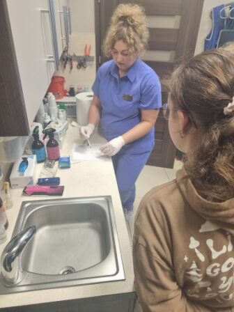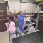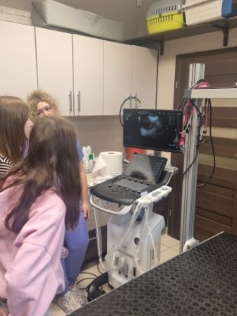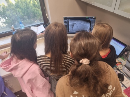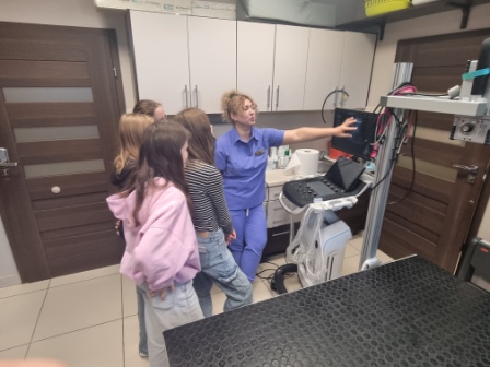 Wiktoria Bagińska, Wiktoria Jastrzębska, Anna Matejczuk i Iza Sosnowska przeprowadziły wywiad z panią doktor, pytając o specyfikę pracy weterynarza, najczęstsze przypadki spotykane w gabinecie oraz o to, jak prawidłowo dbać o zdrowie kotów i psów. Pani Magdalena Kierklewicz przygotowała dla uczennic ciekawe zagadki diagnostyczne – określanie nieprawidłowości na zdjęciach RTG. Było to okazją do poznania, jak duże znaczenie w leczeniu zwierząt mają badania obrazowe.