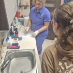 Dziewczynki sprawdziły także jak przygotować preparaty do obserwacji pod mikroskopem. Podczas zajęć uczennice oglądały próbki krwi oraz obrazy i nagrania badań USG psów i kotów, dzięki czemu z bliska poznały nowoczesne metody diagnozowania chorób zwierzęcych.
