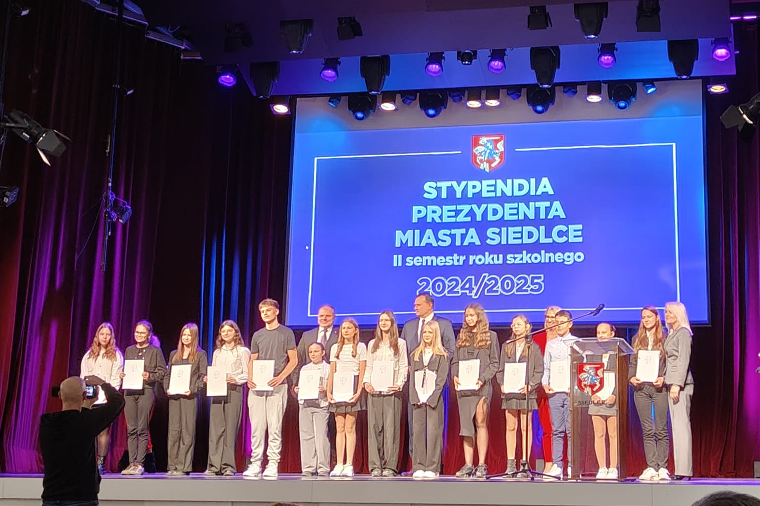 12 listopada 2025 r. w Sali Widowiskowej Podlasie MOK odbyła się uroczystość wręczenia listów gratulacyjnych stypendystom Prezydenta Miasta Siedlce. Był to wyjątkowy moment dla naszych zdolnych uczniów, którzy konsekwentnie rozwijają swoje pasje i zainteresowania. Ich wysokie wyniki w nauce i osiągnięcia naukowe, artystyczne i sportowe zostały docenione. Jesteśmy z Was dumni!