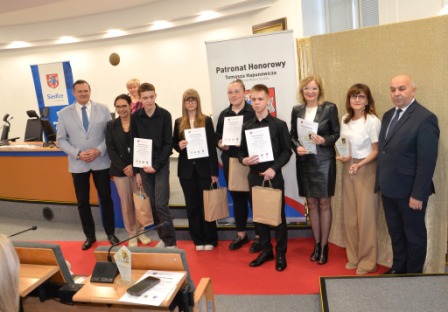 I m. grupa teatralna „Siódemeczka”, którą tworzą Amelia Walczuk kl. 7b, Karolina Krasnodębska kl. 8b, Adam Skiba kl. 8b i Aleksander Chajewski kl. 8b.
