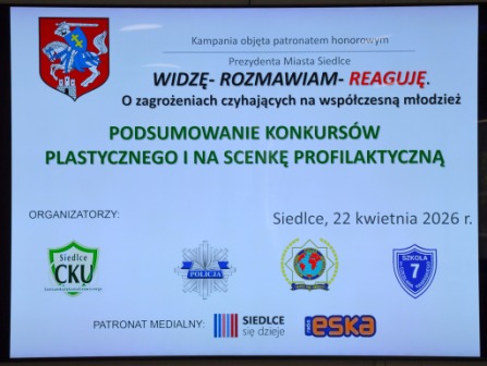 Za nami podsumowanie udziału w kampanii „Widzę – rozmawiam – reaguję. O zagrożeniach czyhających na współczesną młodzież” realizowanej w roku szkolnym 2025/2026, w którą licznie włączyli się nasi uczniowie. Brali udział w warsztatach i spotkaniach, a także w organizowanych konkursach.