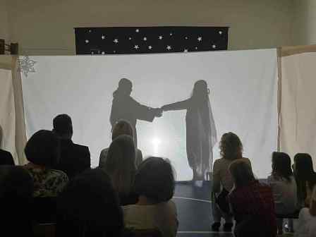 Po przywitaniu zebranych przez dyrekcję i wprowadzeniu przez dziewczynki z klasy VIII w historię Bożego Narodzenia, uczniowie klasy VC przedstawili teatr cieni wcielając się w postacie, które przed laty odegrały najważniejsze role podczas narodzin Chrystusa. Przedstawienie wzruszyło wielu uczestników a mali aktorzy zostali nagrodzeni gromkimi brawami. Kiedy kurtyna opadła, scena zmieniła się salę taneczno-baletową. Uczniowie z koła tanecznego klas I-III wykonali taniec do kolędy: „Przybieżeli do Betlejem” a na koniec przy utworze: „The sprinth of Christmas Past” uczennice klasy VID wykonały baletowy taniec aniołów podtrzymując ogromne wzruszenie zebranych.