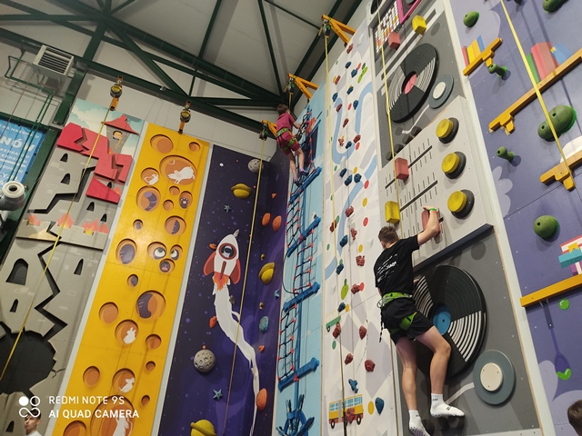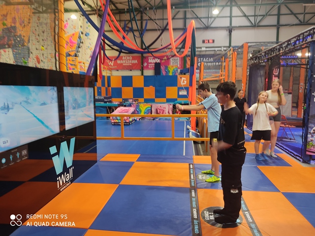 Drugim punktem programu wycieczki był pobyt w Parku Trampolin i Torze Ninja w Stacji Grawitacja. Ruch, adrenalina, integracja. Czas podczas świetnej zabawy mijał uczniom bardzo szybko!